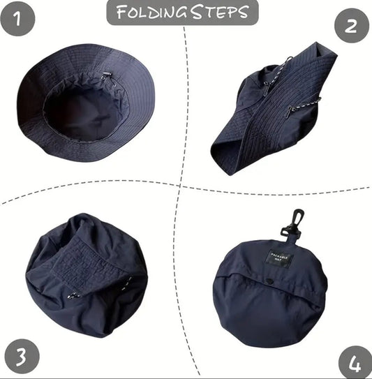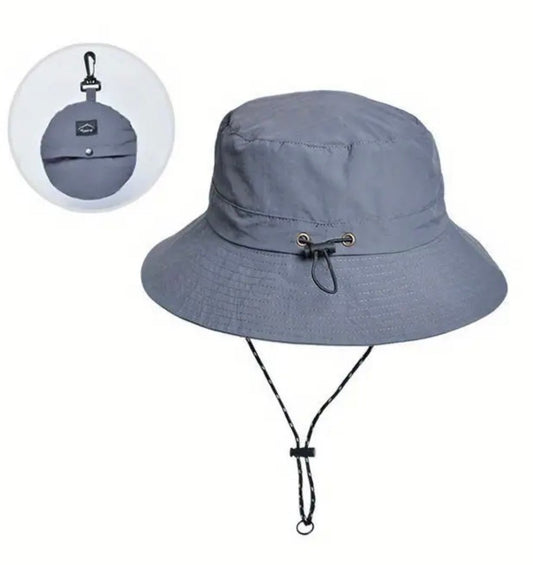 A unisex, waterproof, quick-drying sun protection hat with a wide, foldable brim...